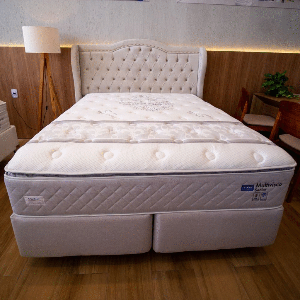 O colchão Probel Multivisco é um colchão de molas ensacadas individualmente com excelente suporte, pois se adapta ao corpo e evita a transferência de movimento. Suas vantagens incluem o alinhamento da coluna, o conforto para casais com biotipos diferentes, o uso de espumas de qualidade com tratamento antiácaro e a durabilidade garantida pelo molejo resistente. Os benefícios são noites de sono mais tranquilas, alívio da pressão e prevenção de alergias.